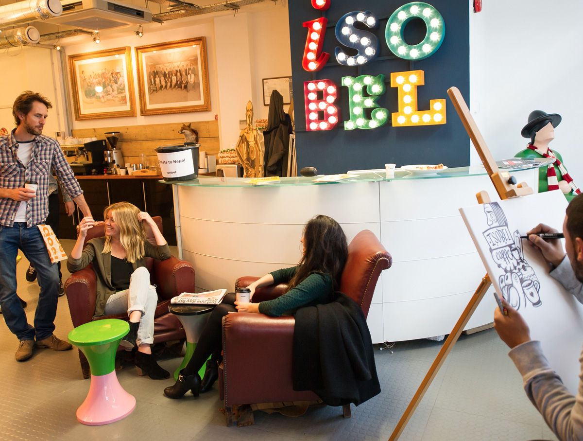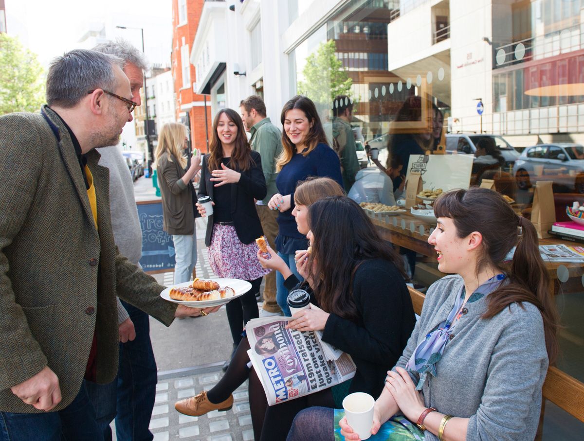 This week was London Coffee Week. So the agency was reborn as a café as part of #windowplay. For two mornings, passers-by got their flat whites, lattes and cappuccinos for free. Or if they were feeling charitable, they could give a small donation to help Nepal earthquake survivors.