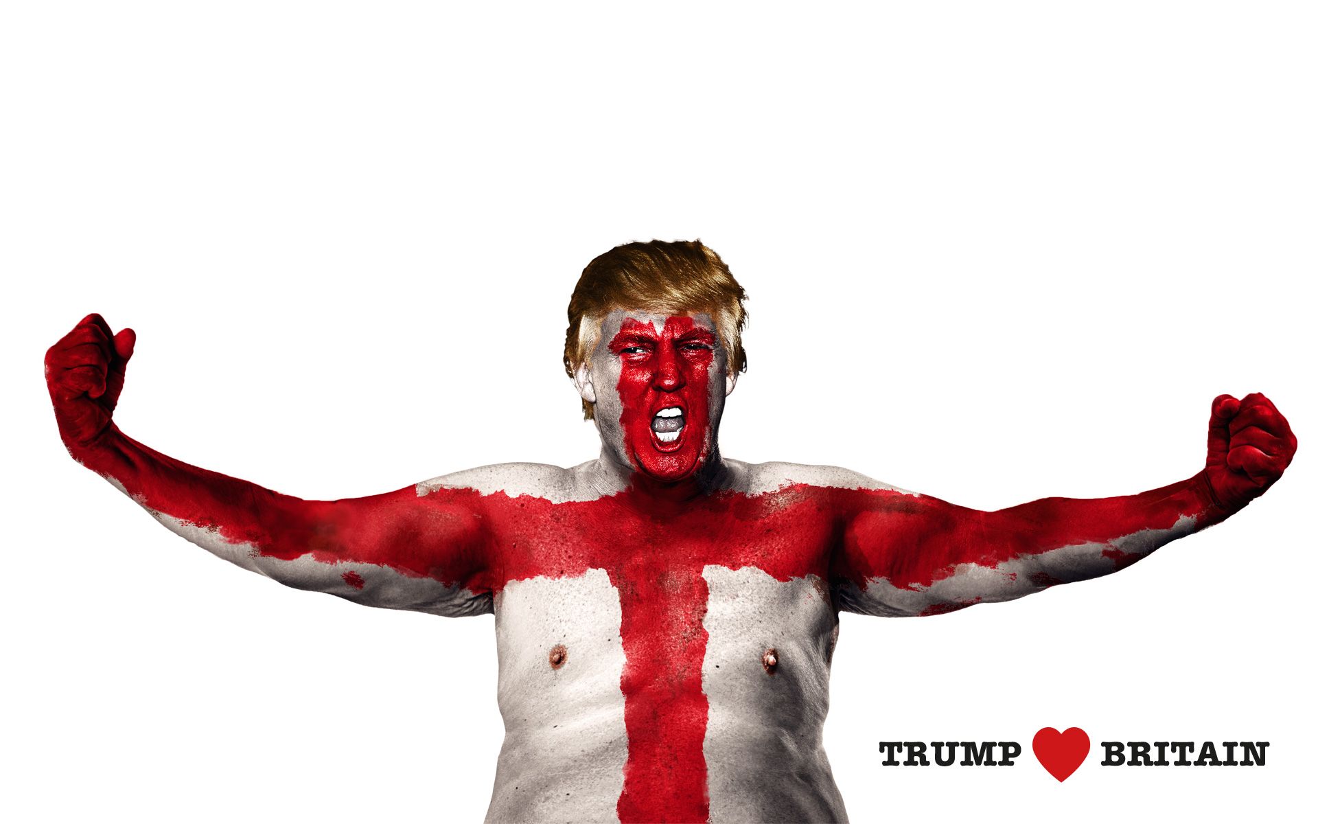 Our “Trump Loves Britain” campaign launches today, April 1st, and will run digitally and in print featuring iconic photographs painstakingly recreated with the Donald himself.